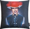 Extravaganter Eyecatcher mit keckem Porträt in intensiven Farben und einer grauen Fleece-Rückseite. Ein modisches Statement, das jedem Sofa, Sessel oder Bett den besonderen Touch verleiht.