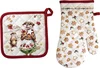 Das Set besteht aus einem Grillhandschuh und einem passenden Topflappen in harmonischem Creme-Ton mit weihnachtlichem Keks-Design.